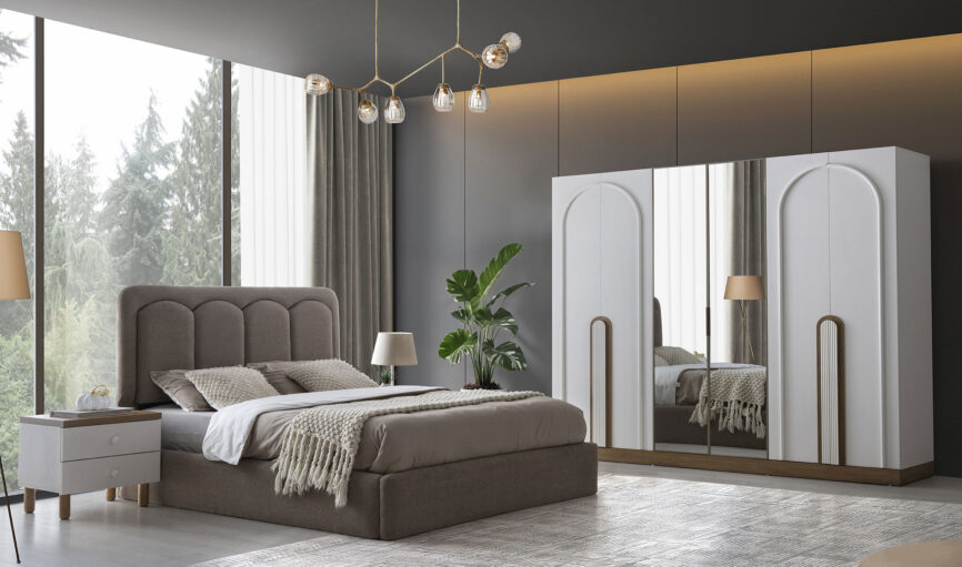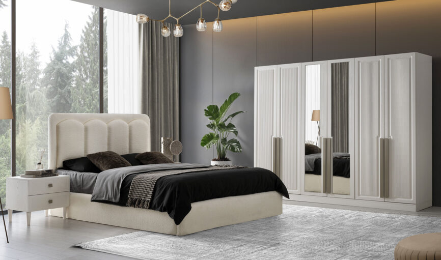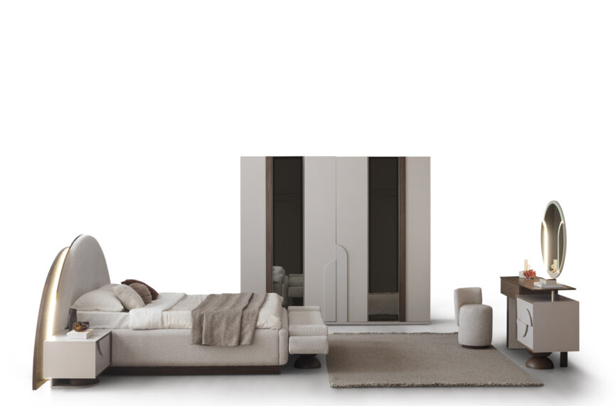 - Gardolap, karyola ve başlık, şifonyer ve ayna, 2 adet komodin takım fiyatına dahildir